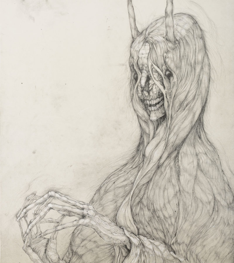 Born 1980 in Tokyo. Paints monsters that live for tens of thousand years in very fine point and line drawings.