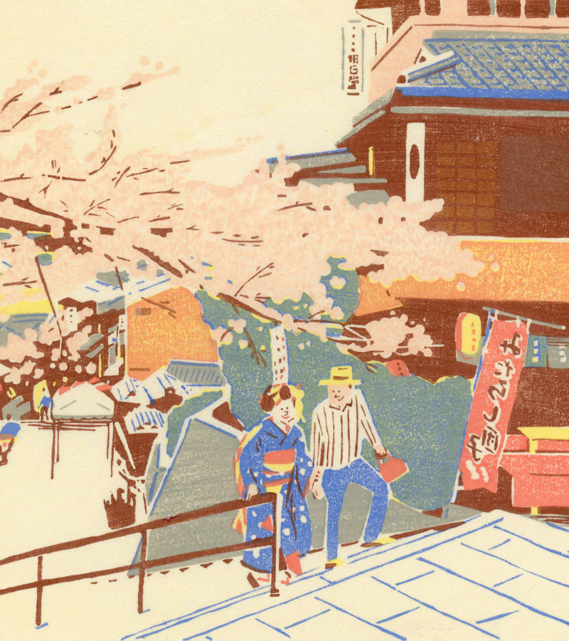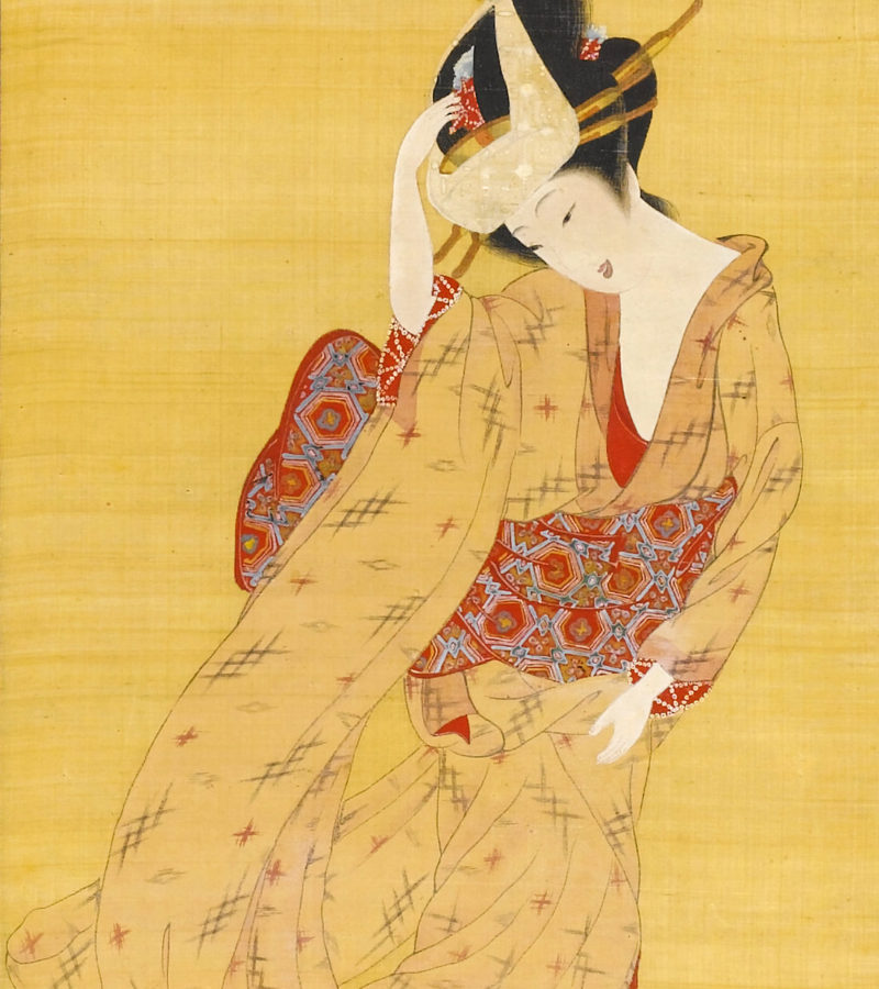 Ukiyo-e was born in the Edo Period after the end of long battles, when the world was moving toward peace, and are typical of Japan. Woodblock paintings of beautiful women, landscapes and Kabuki actors, they are also historical records which reflect the culture and customs of the era. Black portions used ink, while colors were drawn using chalk and mineral pigments. The works show young people from the late Edo Period vividly painted.