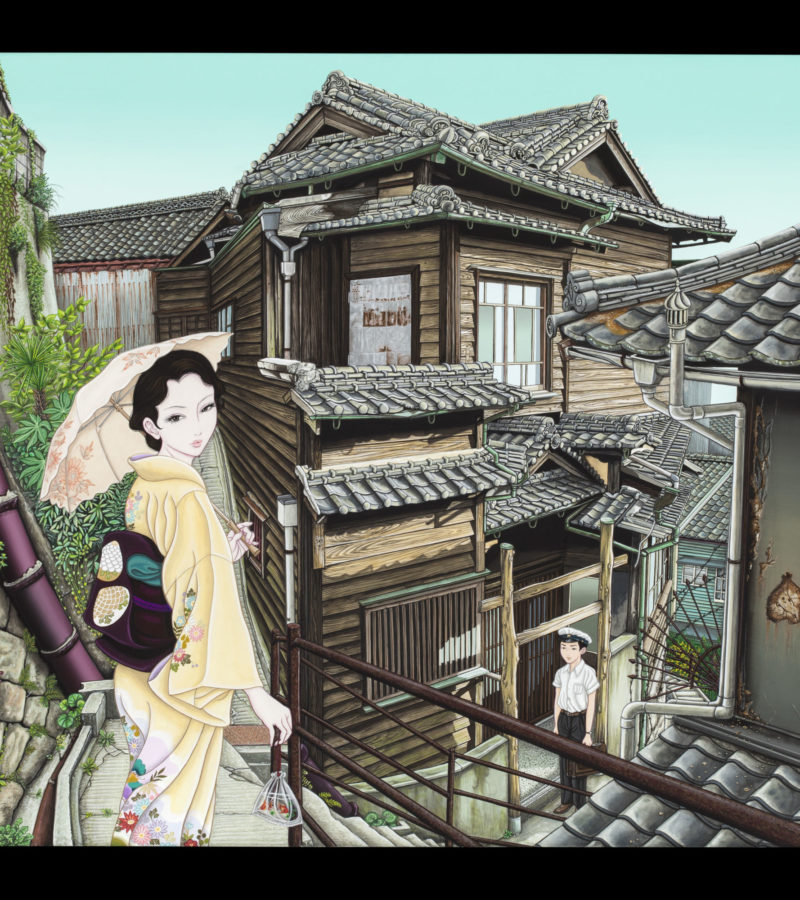 Born 1971 in Tokushima Prefecture. In 1994, he graduated in design from Kyoto Seika University, Faculty of Art, specializing in Manga (the university now has a Faculty of Manga). His distinctively lyrical and erotic images of women, which combine the dual qualities of Manga and Ukiyo-e drawn with exquisite lines, evoke a nostalgic view of the world together with a strong sense of presence. In recent years, his works have been exhibited at overseas art fairs in Asia, and have gained a high reputation both at home and abroad.