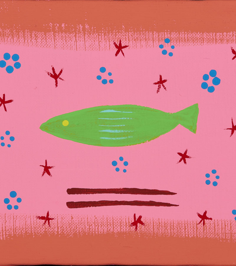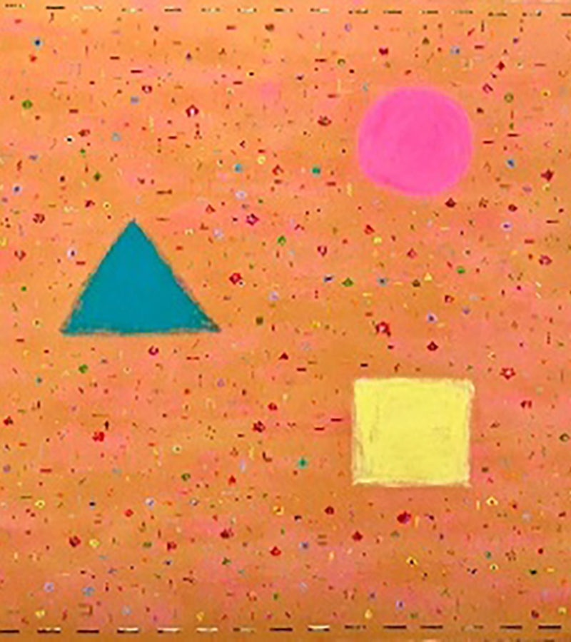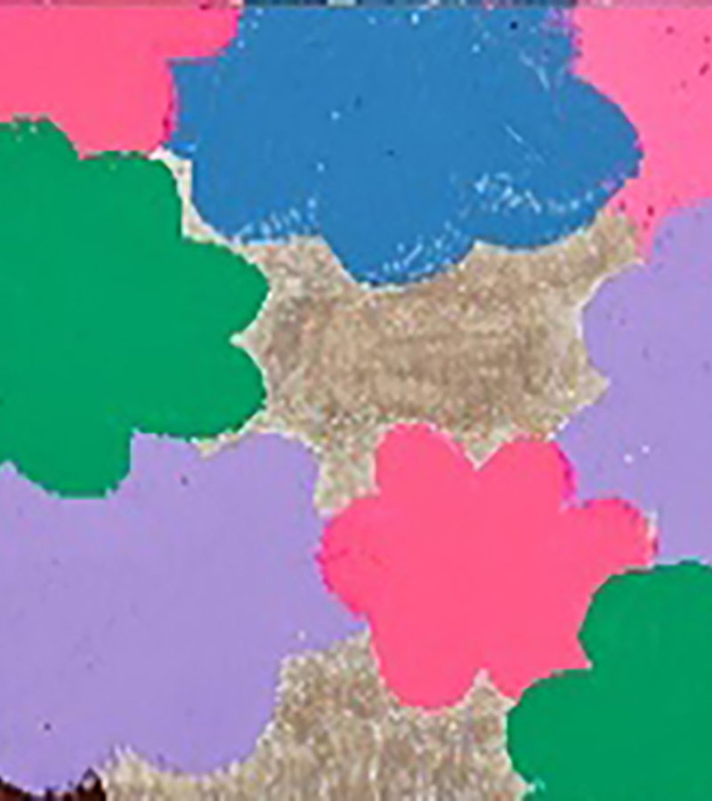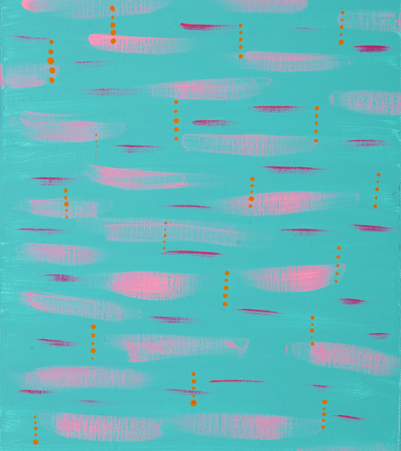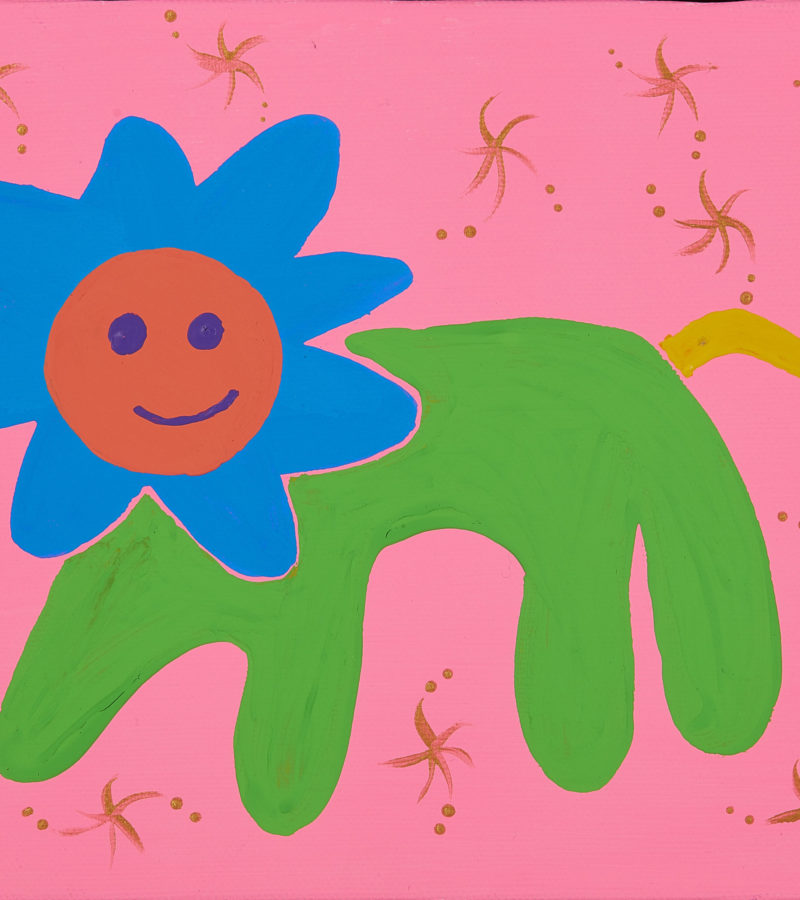The first autumn winds gently stir the pink flowers like a pinwheel. The colors evoke an image of the changing season. The artist used her favorite colors and unique style to create this whimsical image for her fans.