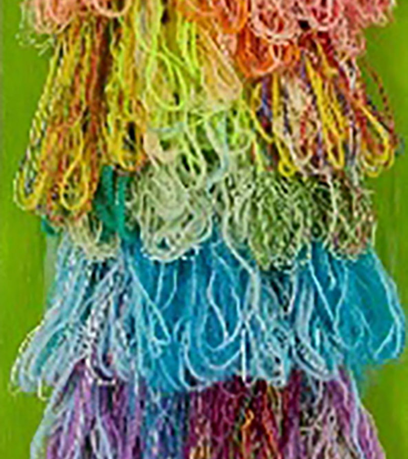 The nicely draped yarn reminds me of a winter evening when one is wrapped inside a warm blanket. Her combination also generates the thought of relaxing one’s body and mind, a process which makes our thoughts clear and helps us to feel free. It is a work which encompasses the imagination and thought, a creation of unique mind and liberation.