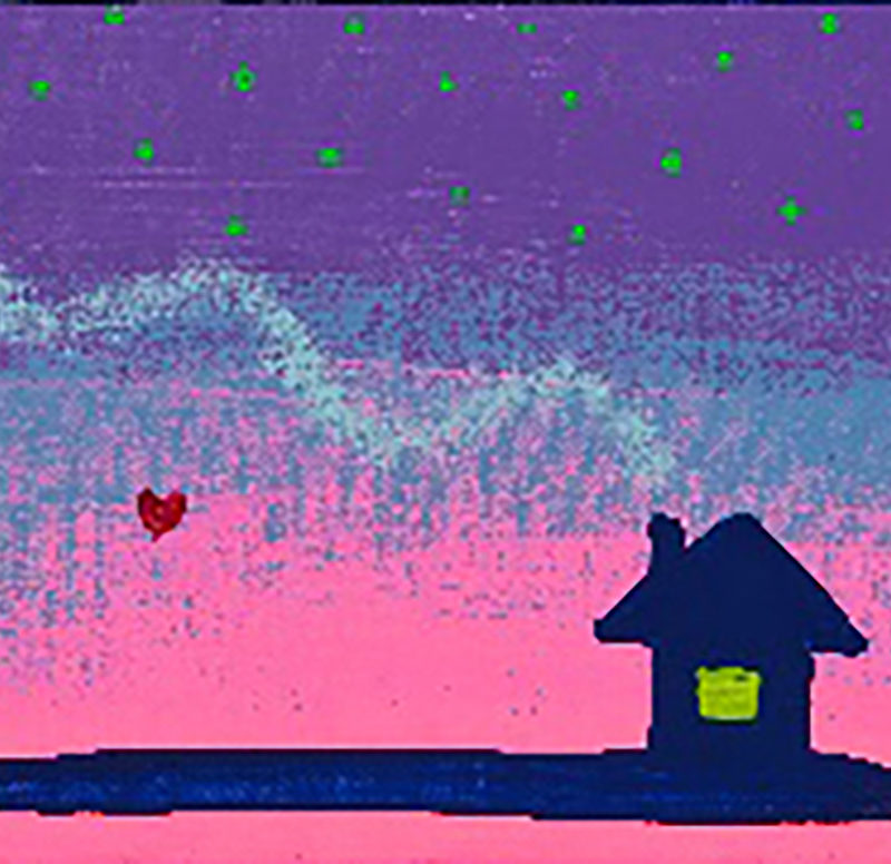 Although it is small, it makes me feel warm as if it were a peaceful and relaxed home. This is an artwork that you can hear the voice of your family greeting you saying “Welcome back, Dinner is stew!”