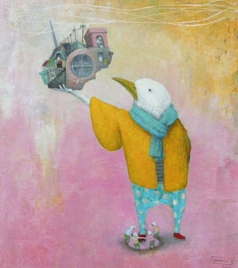 It germinates the image of someone in a bubble bath after a long day, with favorite background music, relaxing and saying bye to the day’s troubles. The artwork also reminds me of one dazzling day on a spring holiday when I was a child climbing a mountain with friends, trying to see if we could reach the clouds at the top. Though the dream of reaching the clouds was unrealistic, we enjoyed a wonderful day and felt that we achieved our goal. Concisely put,