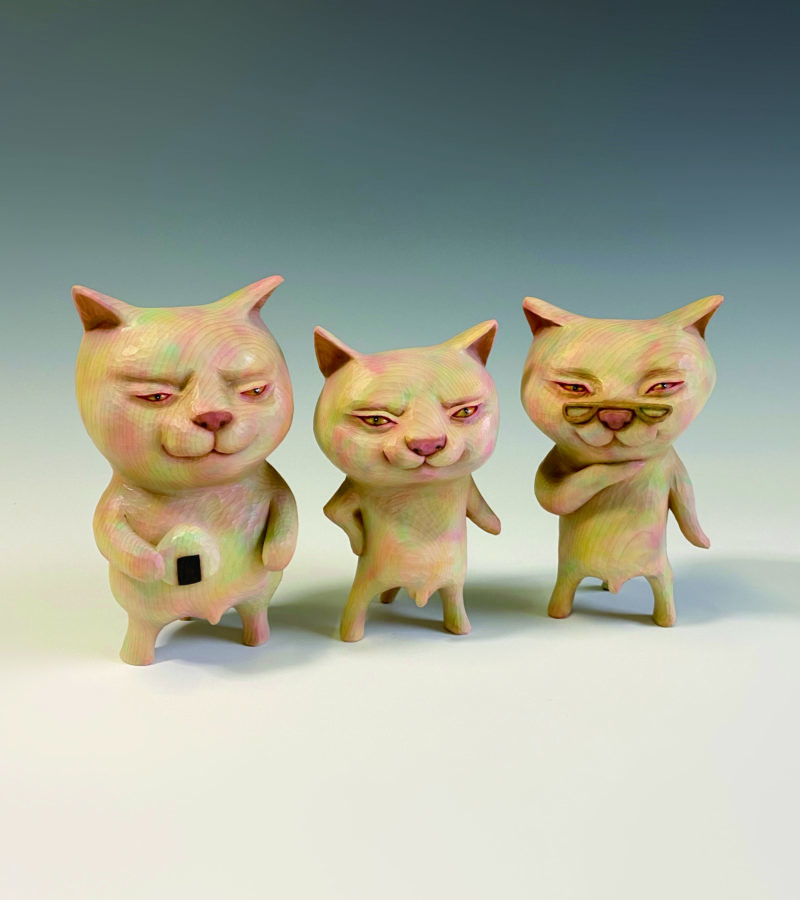 “UNIQUE”, “Cute”, “Fluffy” and “Sweetness of colour”. When you look at Nohara’s sculptured wooden art, it feels as if these emotions are embodied within.