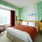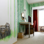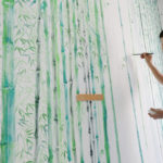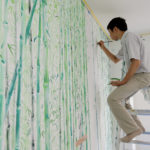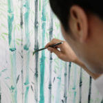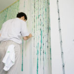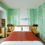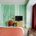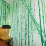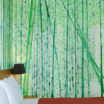 When you enter the room, the first thing you’ll notice is the fresh green color. Then the bamboo trees stretching straight up to the sky, making you feel just as if you were going deeper and deeper into a bamboo forest. Nishikawa said: “I wanted people who were tired of the bustle of city life to be able to really relax in this room”. The room was designed with various situations in mind, such as the view when a guest stands at the corner of the window, or the view when lying down on the bed. The artist changed his materials and colors depending on the position in the room, and coordinated the whole space while keeping it simple. The painting is a tranquil summer green. We do hope you will come and stay in the “Bamboo Artist’s Room”.