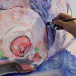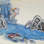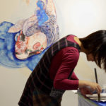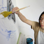 Having left high school before graduation, Naito became an autodidact and started painting with a variety of techniques from oil painting, Nihonga [Japanese painting], ink drawing to woodblock printmaking. She also has closely collaborated with experimental musicians such as sound-improviser/ composer Tetuzi Akiyama, occasionally producing “Enha [circle wave]” multiples with her artwork dedicated to collaborators’ sound/music and organizing performance event “Nami no Kai [wave gathering].” Naito’s work always reflects her interest in harmony and androgyny inherent to the human being as well as in an ancient Zen belief in mind-body unity.