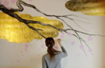 I hope that this work with its cherry blossoms and gold foil, which has been used for wall paintings in Japan since ancient times, will give you a sense of brightness and the uniquely Japanese aesthetic awareness of transient nature.