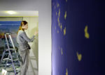 In this room, I painted cherry blossoms using the butterfly which is a symbol of transient nature or the soul. The butterfly represents a cycle, such as that of the four seasons – spring, summer, autumn and winter – and human birth and death, as it flutters around the room.