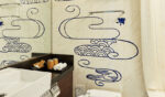 Many traditional patterns are used in crafts, traditional performing arts, and are also found in everyday items such as interior decor. These patterns are often inspired by objects, phenomena, and the beauty of nature, including the four seasons, all of which are deeply rooted in Japanese life. Each pattern carries its own meaning and wishes, such as “health,” “good relationships,” and “longevity,” as well as themes related to work and studies like “business expansion” and “academic success.” There are also patterns symbolizing “happiness,” “protection from evil,” and “future prosperity.” The three large bundled noshi (a traditional ceremonial wrapping symbolizing good fortune) in this room represent a pattern that symbolizes the fortunate connection between people. Within this pattern, various other auspicious motifs are depicted. I hope you can appreciate the charm of these designs and feel the essence of Japan.