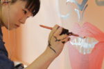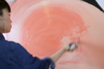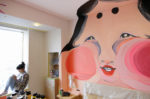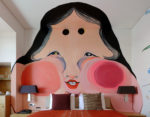 The artist Aki Kondo started on pruduction of “Otafuku Face (=moonfaced woman) ” on May 7th, 2015, continued work for 9 days while she stayed in the hotel, and completed it on May 15th, 2015.