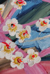 She says: “I felt that the whole beauty of Japan was within the “Otafuku Face”. When a guest enters the room, the first thing that catches their eye is the smiling face of the woman. And: “She’s also called a “beauty with five virtues”. By painting the face of this humble, demure woman which was a good example to ancient Japanese, she expressed the beauty of the heart of the Japanese people. On the opposite wall, she painted a graceful plum tree, loved by the Japanese, which actually extends up to the ceiling. This plum tree which cradles the bed is full of vigor when viewed from afar, but reveals fine detail close-up – a totally different impression.