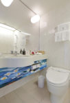 When you lie in bed and look at the ceiling, you may be a little surprised to see the smiling face of Otafuku peeking out at you. When you look through the mirror next to the TV at your bed, you may feel as if the Otafuku is looking at you wherever you are. However, if you spend some time with Otafuku and look at her from different places, you will become attached to her various expressions. The inside of the closet is also decorated with a picture of a traditional Japanese game called “fukuwarai,” which is sure to tickle your playful side.