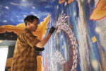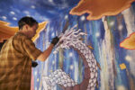 The whale symbolizes “sunrise” as it can pull up the sun from the sea. In the artwork with two whales, the red whale represents “sunrise,” while the blue whale represents “moonrise,” making it a lucky charm where the sun and moon coexist. The elephant symbolizes “yin and yang,” a lucky charm that receives the sun and moon pulled up by the whale on land, pulls them with its nose, and returns them to the sea, creating day and night.