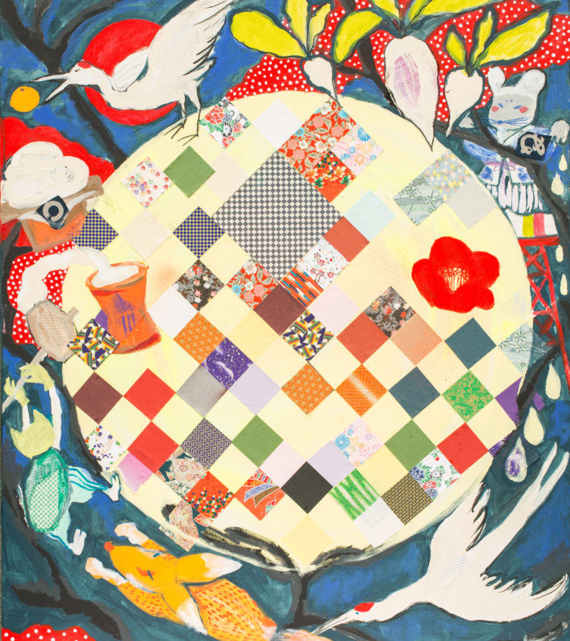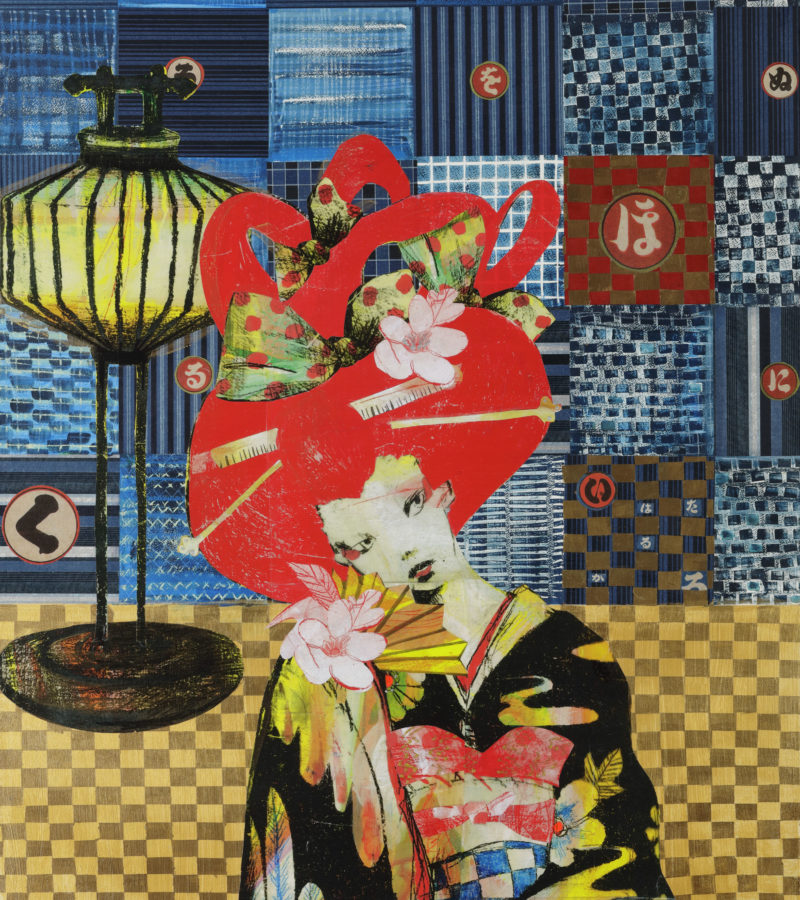 カラフルでパワフルな作品を、版表現をベースに独自の手法で制作する。