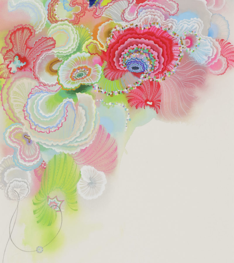今回の展示は、世代を超えた二人のカラーリスト(色彩画家)の作品で、華やかな秋の色彩を表現いたします。25Fエントランスでは池田満寿夫の六曲屏風でゲストをお出迎えし、向かい壁面に飾られた集治千晶の色彩豊かな作品との対比をお楽しみいただきます。また、もう一つの展示会場である31Fでは、エレベーターホールとギャラリールームには、集治の舞い踊るような水彩画などを展示し、回廊6面のウインドウには池田の鮮やかな配色によるリトグラフを展示します。