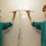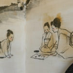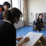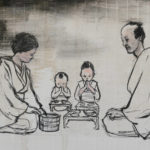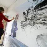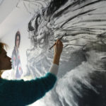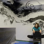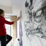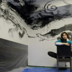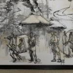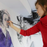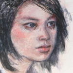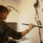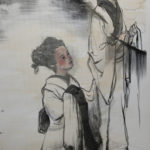 現代人の心模様をモチーフに、墨を使用した人物画を描く。