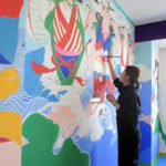 この部屋を訪れる人が、元気になりますように!という願いを込めて描かれています。