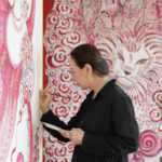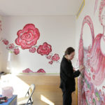 部屋の制作にあたり、蜷川さんがコンセプトとしたのは「薔薇と天女」です。 羽衣を身に纏った美しい天女。天女が舞い降りた薔薇の花が咲き乱れる大地を部屋全面に描きました。