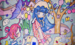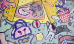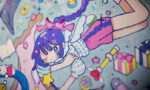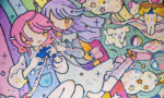 「いつかあったような日常」をベースに、幼い頃に親しんだ少女漫画のような大きな瞳の少女や、ファンシー雑貨のような色彩を用いて表現しています。また、絵自体が子どものおもちゃやノートに描いたお絵かきのようであることを大事にしています。いつか汚れたり壊れてしまいそうなものに美を感じます。