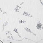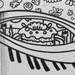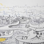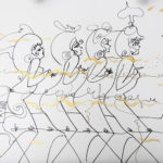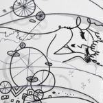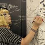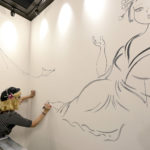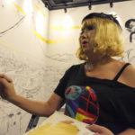 自らをも作品化させ、その活動は自由で柔軟的。一筆書きの線画による即興パフォーマンスが得意。