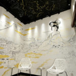 懐かしいカンカンの踊り子にゴジラに謎のUFO、歩き回る猫と無数のエロかわキュートな女性たち。 ビジネスタウン汐留にあるホテルの小さな喫煙スペースが、大人のための大切な一休み「一服」 の時間を遊び心と共に楽しく、そしてクリエイティブに過ごすお部屋となります。 壁一杯に俯瞰で描かれたカオス的魅力溢れるイリュージョンな東京の街を、 実際に鳥の目のように見下ろす立地にあるホテルの25Fからイメージトリップを楽しんでいただける、そんな喫煙スペース「TOKYOマロン」にぜひお立ち寄りください。