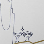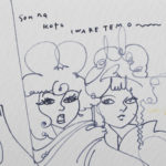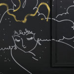 アーティストの林晃久さん(=マロンちゃん)の作品はどれも官能的でグラマラスな女性をテーマにしています。林晃久さんはマロンちゃんの世界をもっと自由に実現するために、自らをも作品化させてマロンちゃんの姿になって活動しています。芸者さんの煙管の煙から東京の賑やかで騒がしい景色が壁一面に広がっていきます。街の中には、さまざまなシーンやキャラクターが登場しています。ゴジラ、UFO、ドラムを叩くうさぎ、大きな象、街を歩き回る野良猫たちなどの中、主役は無数のキャバレーの踊り子や女性たちです。絵をじっと見つめて喧騒に魅かれれば、街の音楽や音が聞こえてきそうです。大人の一休「一服」の際に楽しんでいただける喫煙スペースです。喫煙スペース「東京マロン」の灰皿は販売もしておりますので、ご興味のある方是非お声がけ下さい。