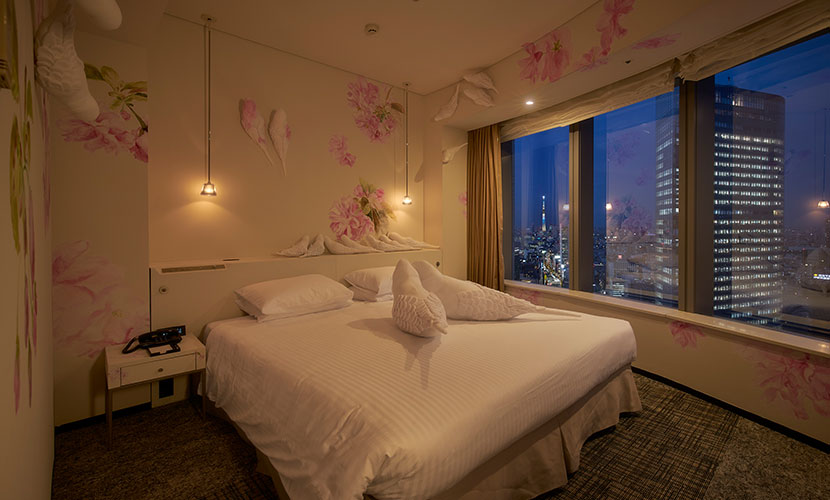 日本の伝統的美意識である花鳥のパワーでそのような理想郷にひたってもらえるお部屋がこの「ユートピア イン ジャパン」です。