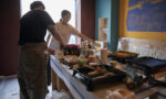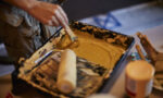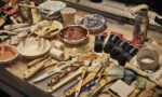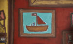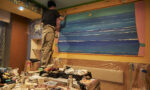 クレヨンで線を引き、その周りを粒子の荒い岩絵具で厚塗りする技法で描く対象は〈子供の本気〉くらいのフォルムを目指している。これがなかなか難しい。