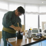 居合い抜きのように揮毫された迫力ある書と円相。その季節の蓋が開く遊び心あふれた春夏秋冬の4つの桐箱。