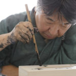 古美術、現代美術など長年の研鑽と美意識を基礎に、紙だけではなく木に直接文字を彫り込むなど「祈り」をテーマに独自の新しい書を表現し発表している。