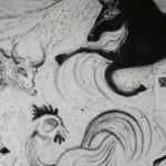 そして、イタチも十二支入りを果たせませんでした。イタチは13番目の到着だった為です。神様は特別に「猪の次はイタチ」としました。しかし、猪年の次に来るのは新年の元日。そう、ついたちですね。ついたち は「次はイタチ」の略なのだそうです。アーティストルーム十二支にはそんな猫とイタチも特別出演として描かれています。