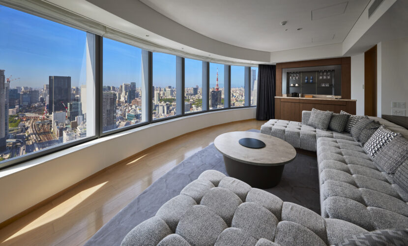 東京・汐留の空に広がるパークホテル東京。その中でもひときわ静かな時間が流れるのが「パークスイート」。都心のパノラマを眼下に、思わず深呼吸したくなるような広がりが待っています。25階のロビーでアートに迎えられ、パークスイートに足を踏み入れると、 窓一面に広がる東京の景色が視界いっぱいに。昼は穏やかな光、夜は東京タワーを含む街の灯りが静かにきらめき、都会の喧騒を離れた“非日常の時間”がすっと流れ始めます。