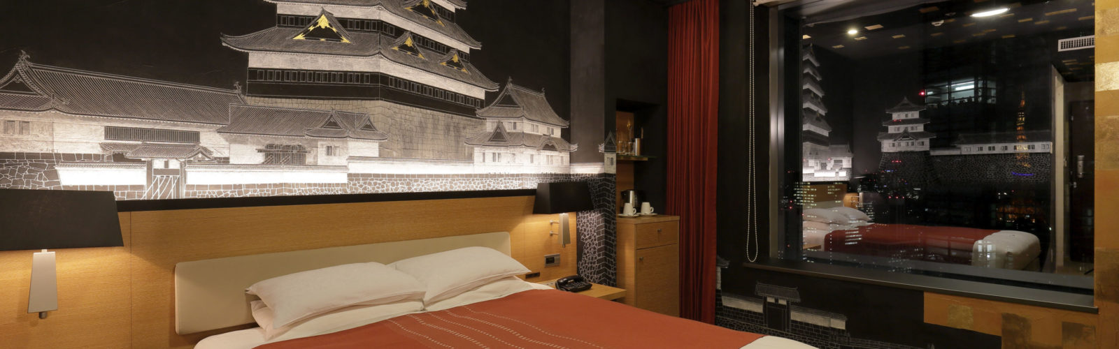The Park Hotel Tokyo (Tokyo, Japan), in December 2012, started the “Artist in Hotel” project where an artist decorates an entire guestroom. The project is still in progress. By 2016, all the guestrooms on the 31st floor will be so decorated, and the “Artist Room Castle”, the 21th in the series, has now been completed (*).