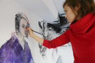 Draws portraits with “sumi” (Japanese ink), on the lines of modern people.