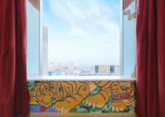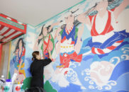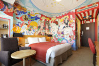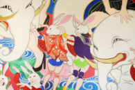 Ishihara says: “I wanted to paint a festival that never ends” . And just like its title “Festival”, the room has become alive. From the walls to the ceiling, people and animals are crowded together. Rabbits, elephants, gods and high school girls are all dancing in the festival on a red background. In the closet, there’s a painting of a “Happi Coat”, while an air vent is fashioned into the mouth of a dancing lion – the playfulness of the artist is everywhere.