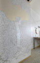 *To create this room, the artist first penciled images on the walls which had been painted with an undercoat, and then colored parts of them with different colors. The result is that the walls look completely different depending on the light.