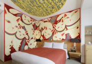 “Artist in Hotel” is the hotel version of “Artist in Residence”. The artist himself stays in the hotel, absorbs the atmosphere of the hotel while partaking of its facilities and services, and fashions a hotel room into a work of art. Inspired by the “Japanese sense of aesthetics”, the artist paints directly on the walls of the room as if it were a tapestry, and affixes original paintings and objects to the walls so that the entire room becomes a room with the artist’s view of the world. These rooms, which evoke typical Japanese themes like “Sumo” and “Zen”, are primarily offered to overseas guests, and are highly appreciated.