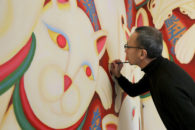 Born in Beppu-shi, Oita in 1953. Graduated from Rikkyo University Economics Department. After retiring from a publishing company, he studied under the artist Kei Hiraga. In his 30’s, he frequented the Asakusa Mokuba-Kan Theater. While selling round rice crackers and peanuts, he turned his attention to popular art painting auspicious theater billboards featuring a lucky doll, beckoning cat and good luck character symbols. Later, he went on to paint “tableaux vivants” of people in the near future (human magic), and an Asakusa version of the famous “Views in and Around the City of Kyoto”, which he named “Landscape of Asakusa People”. Then, taking the name “Fine Arts Traveler”, he wandered the length and breadth of Japan together with other painters doing artistic activities. From his 50’s, he began to paint Japanese “supernatural creatures”.