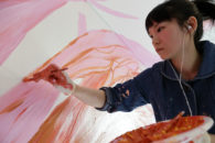 The artist Aki Kondo started work on the “Otafuku Face (=moonfaced woman) ” in the 15th room in the series on 7th May, 2015, continued work for 9 days while she stayed in the hotel, and completed it on 15th May, 2015.