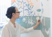 “I treated the room as a white porcelain vessel,” says Ms. Nakamura. The focus was on the white walls, which were primed five times before being coated in white. Taking inspiration from the forms of Nabeshima ware, which is globally famous for its rarity and degree of quality, of which Ms. Nakamura is also a fan, the walls were then decorated with the motif of forty-seven plants from Japan. The resulting design is transparent and refined.