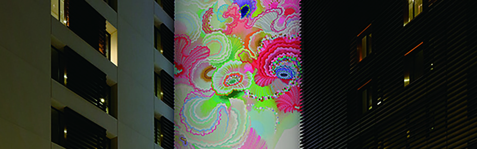 Guests can enjoy original cocktail and dessert that perfectly complement the works on exhibit at ART Lounge. In the evening, powerful images with a motif of the exhibition works will be projected on the 30-meter-high wall.